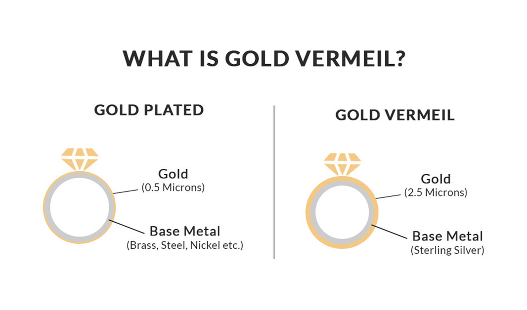 Gold Vermeil is a traditional jewelry technique where a base metal is coated with a layer of gold. It gives the appearance and shine of gold jewelry at an affordable price while remaining durable and lightweight.