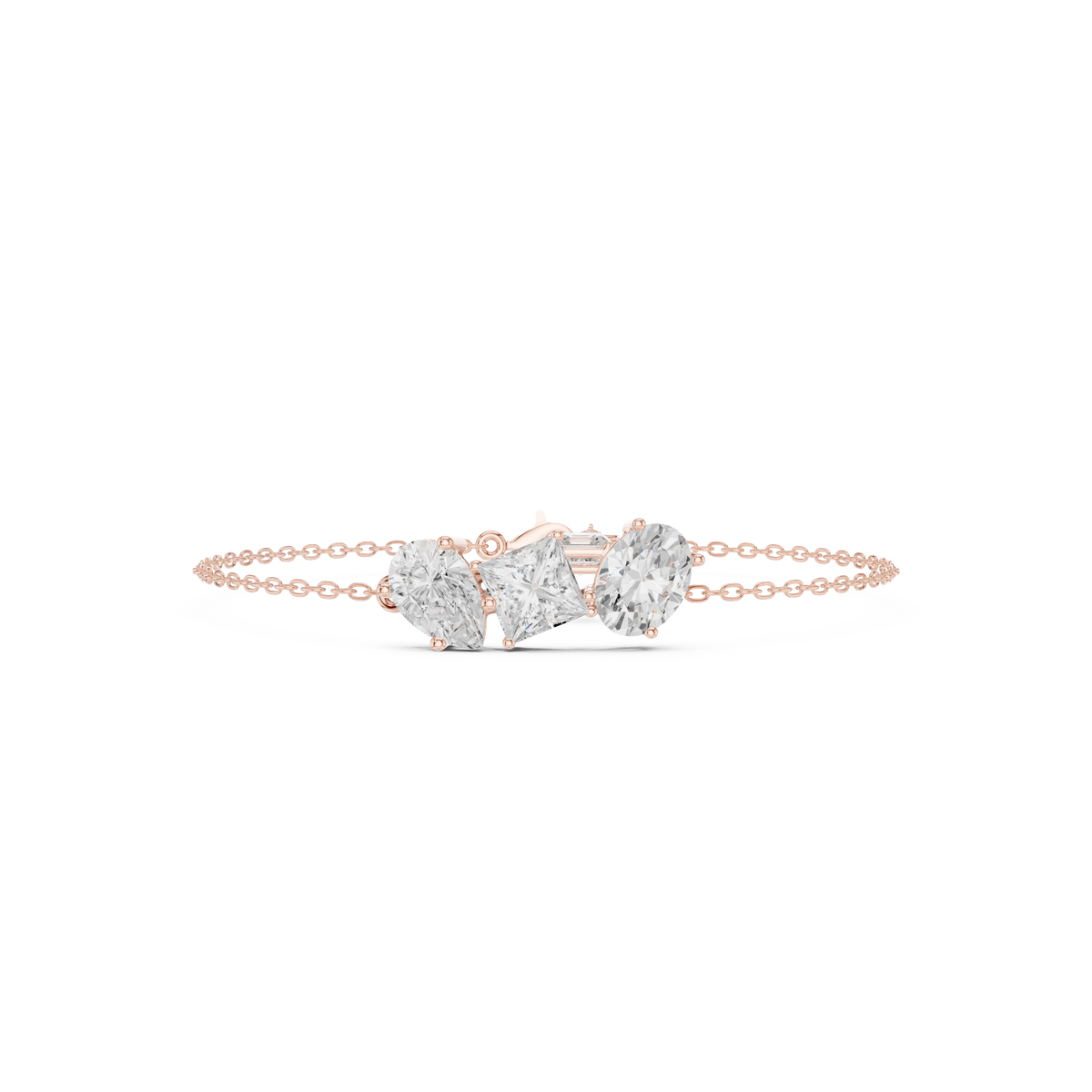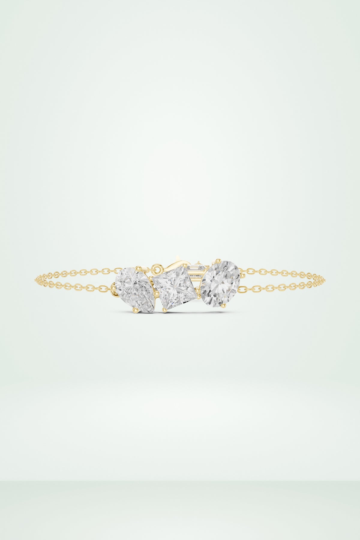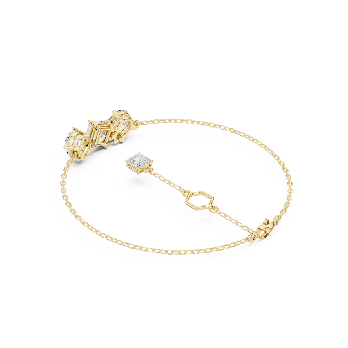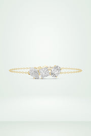 Graceful 22k gold vermeil Three-Stone Diamond Chain Bracelet.