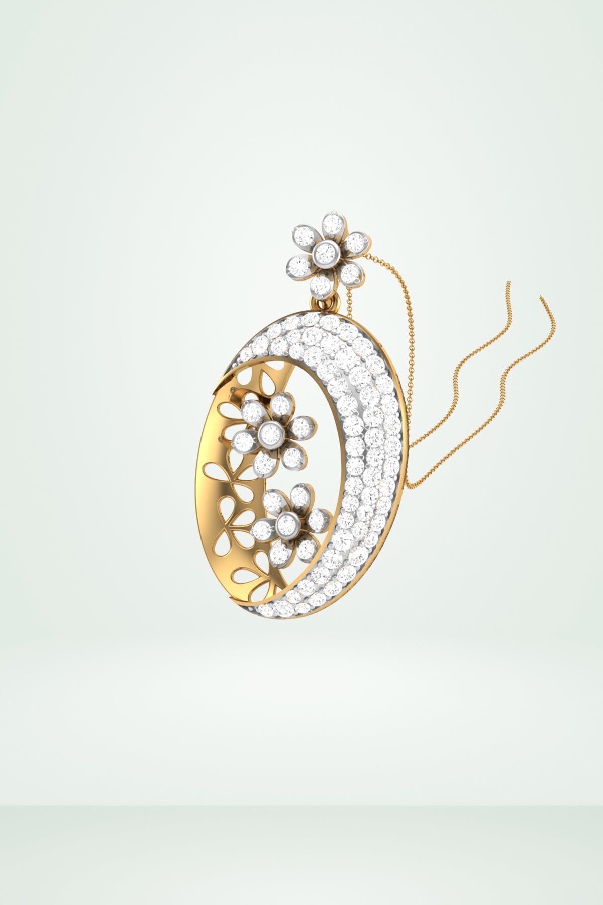 Graceful 22k gold vermeil Floral Oval Diamond Pendant.