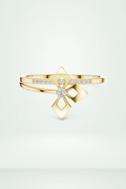 Graceful 22k gold vermeil Geometric Diamond Gold Bypass Ring.