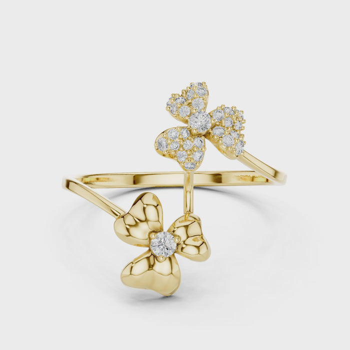 Graceful 22k gold vermeil Parallel Flower Diamond Ring.