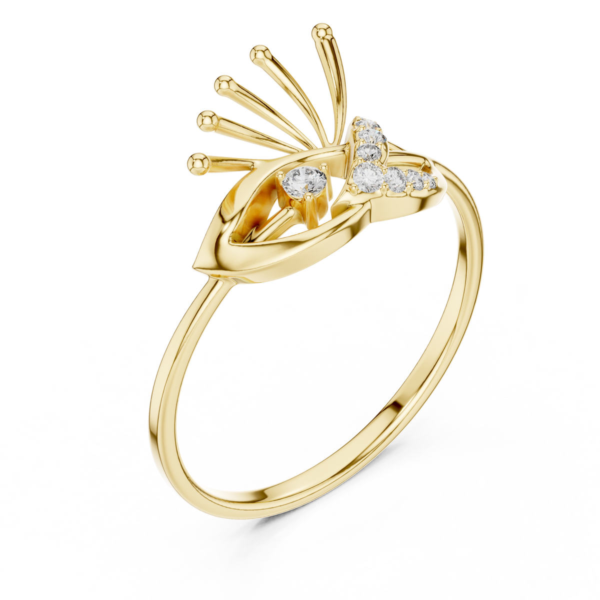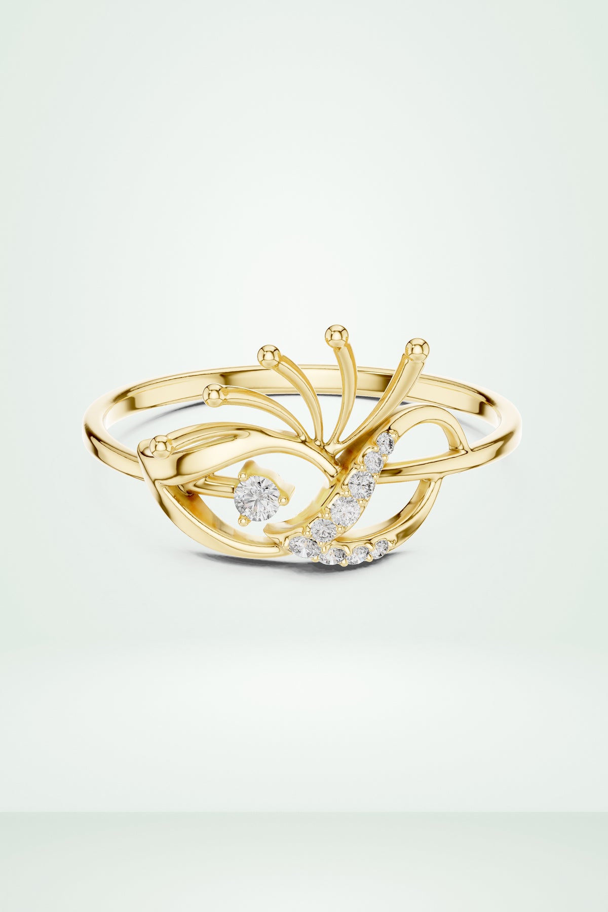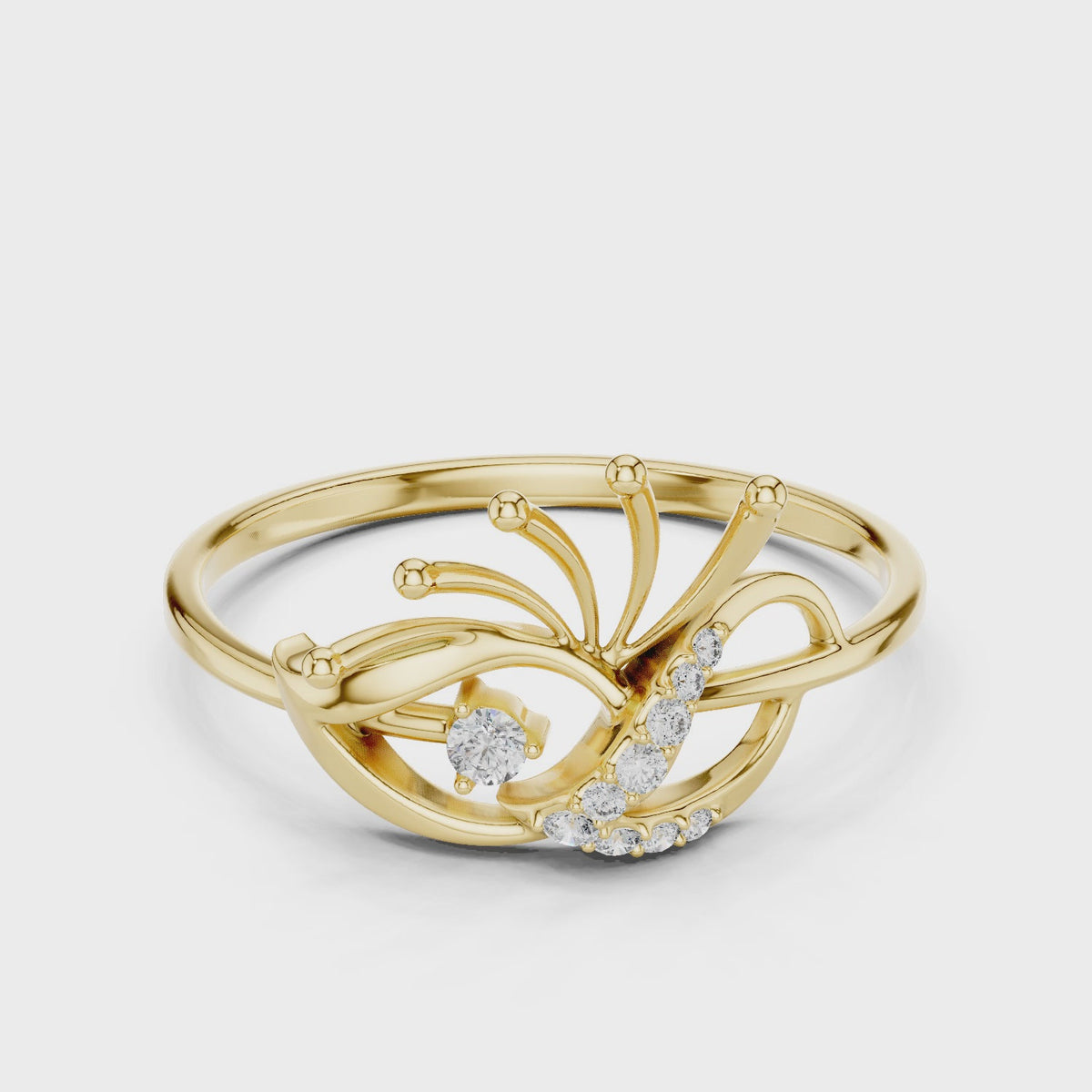Graceful 22k gold vermeil Peacock Style Diamond Ring.