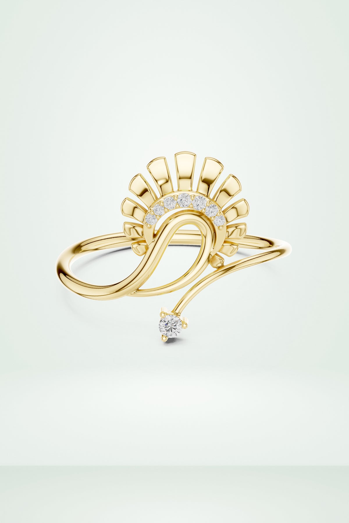 Graceful 22k gold vermeil Peacock Style Diamond Ring.