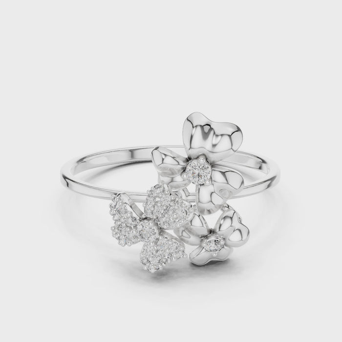 Three Flower Diamond Ring