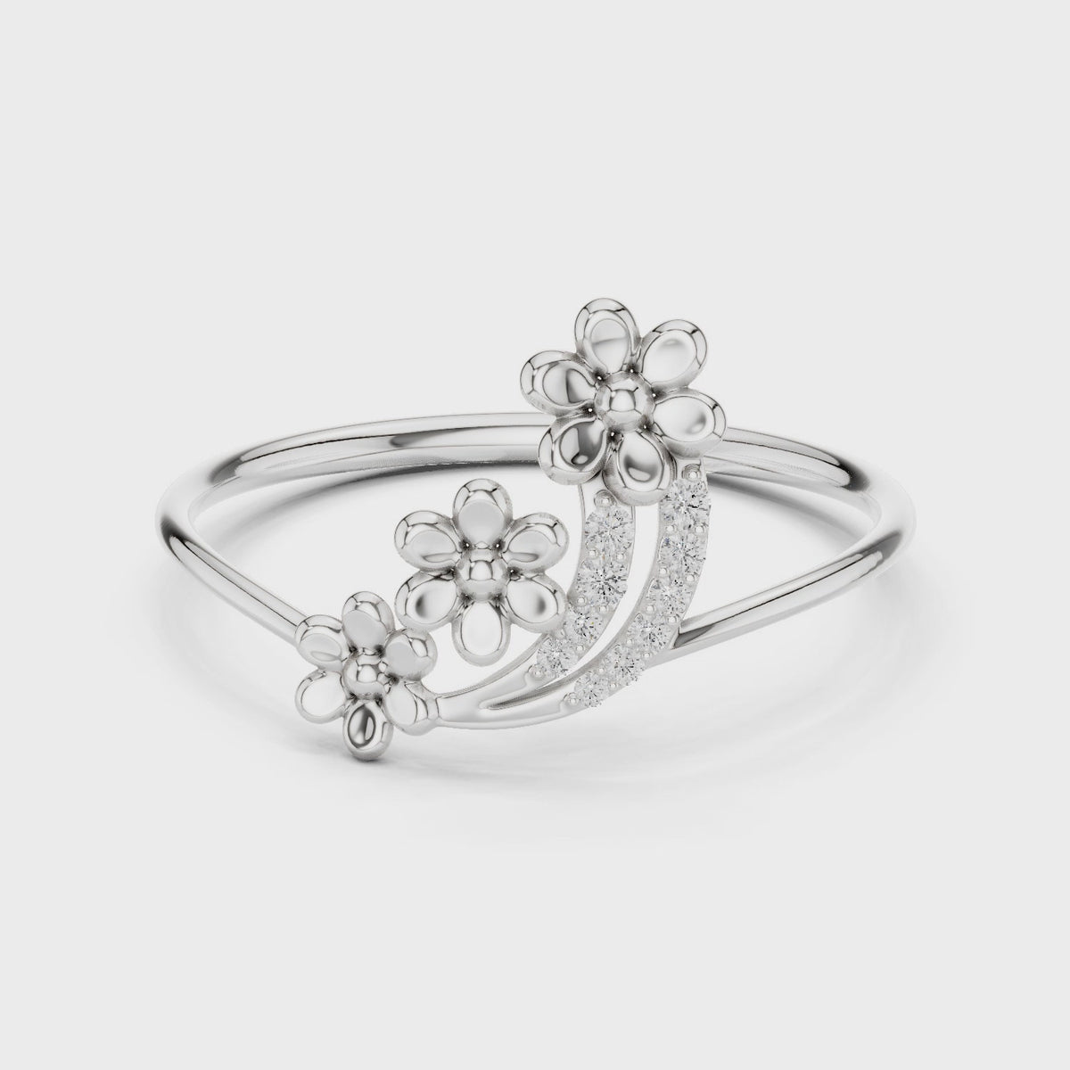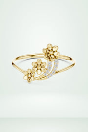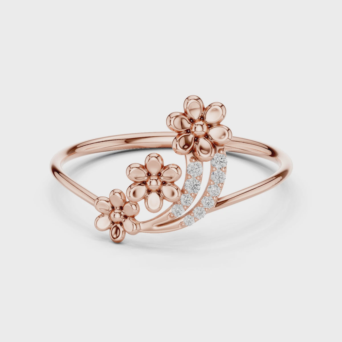 Graceful 22k gold vermeil Three Flower Diamond Ring.