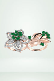 Graceful 22k gold vermeil Dual Finger Floral Diamond Ring.