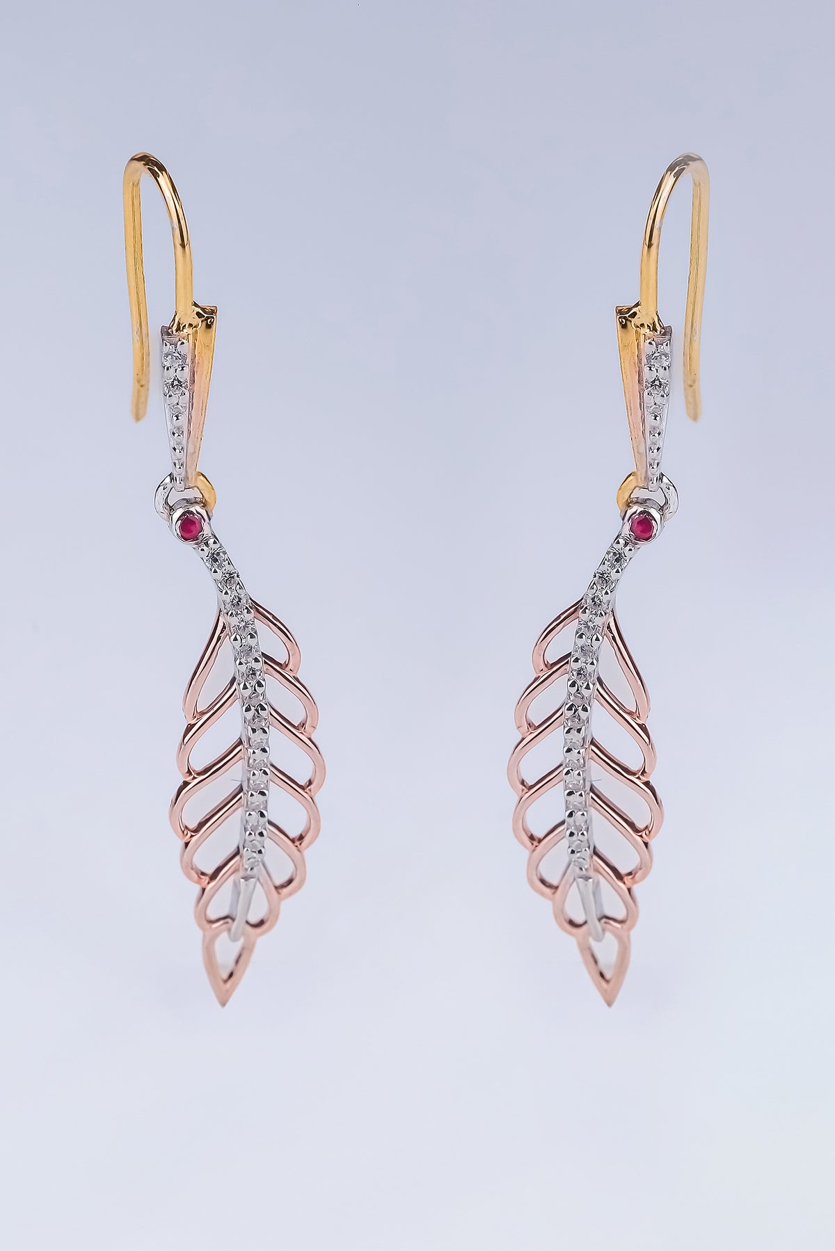 Graceful 22k gold vermeil Leaf Shape Diamond Earring.