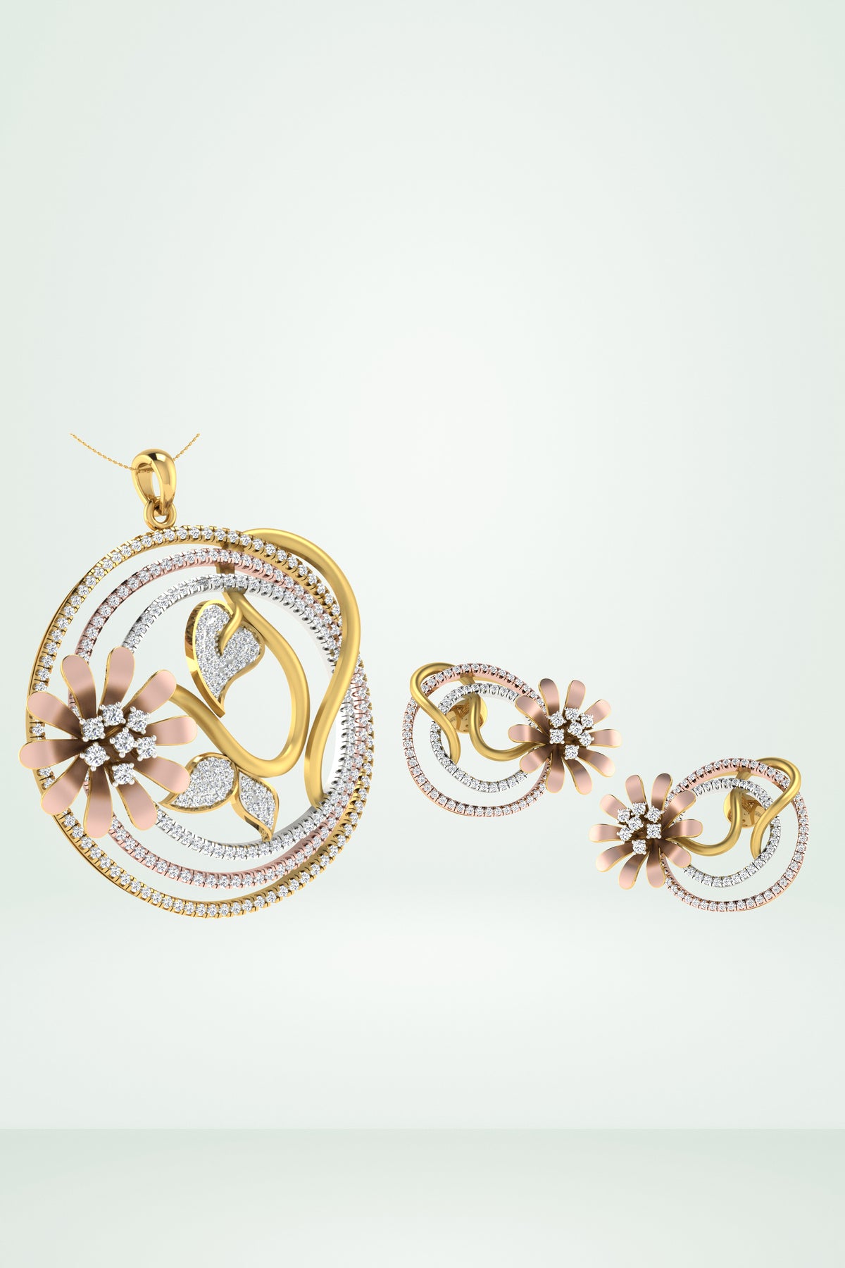Riaagh Modern Abstract Flower & Swirl Diamond Pendant Set